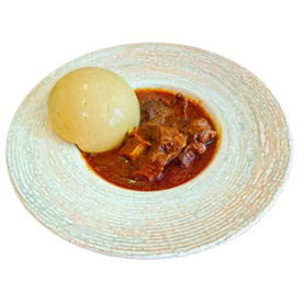 Riz blanc ou foutou banane, boeuf et sauce graine.